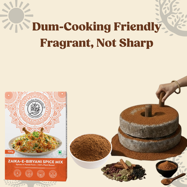 Crafted for aroma-first cooking, this masala allows flavours to bloom slowly. Suitable for veg and non-veg biryani, staying true to tradition.